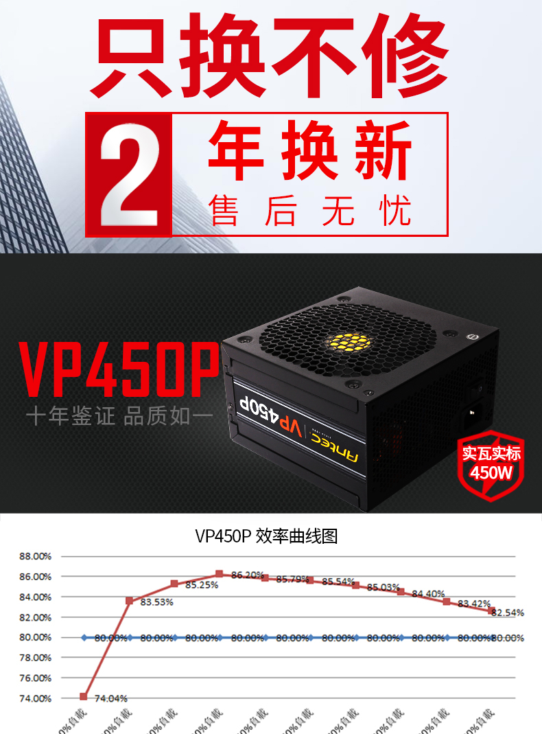 安钛克BP400/BP500/BP600台式机电脑游戏电源额定300W/400W/500W三年换新 BP230 额定200W